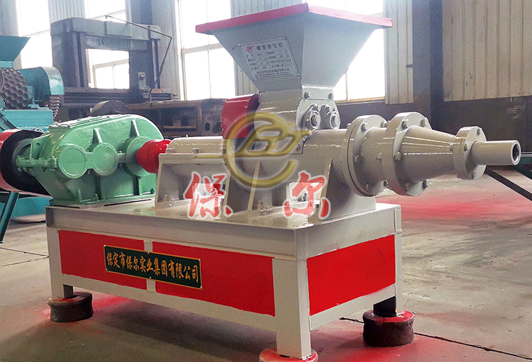 保尔MBJ系列挤压式煤棒机是利用螺旋挤压原理,将调制好的原料压缩成具有一定强度的棒状成型设备。本机体积小,承载能力高。内部的叶轮采用加厚叶片设计,叶轮及筒体内衬板采用耐磨精铸材料而成,寿命比普通材质提高 4-5倍,机头部分采用可更换的耐磨合金制作,更换方便。机头与筒体采用绞接形式,检修时可打开,更换内部的叶轮及筒衬很方便。
